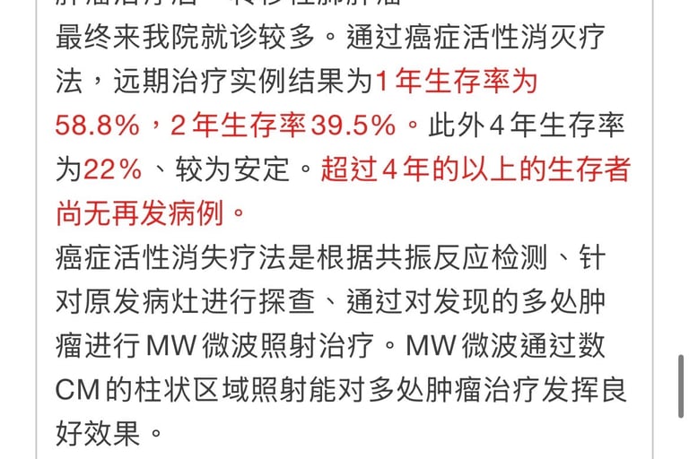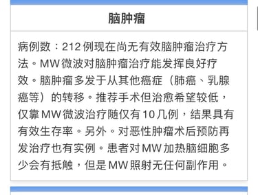 能够坚持使用MW治疗,治愈效果会大大增加。病灶较小、身体状况良好患者治愈率可达80%以上。经共振反应检查早期发现人群治愈率能够达到95%。