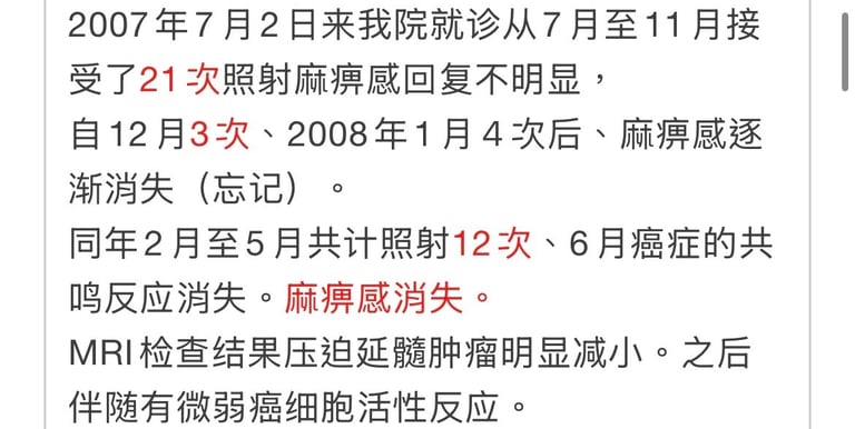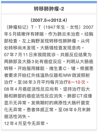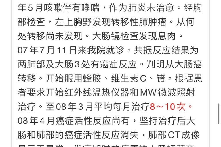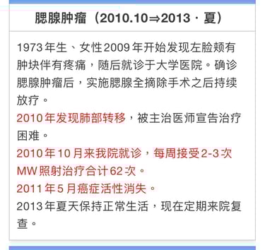2008年9月24日NK・T细胞免疫疗法和MW照射治疗再开始。至2010年9月照射合计31次。