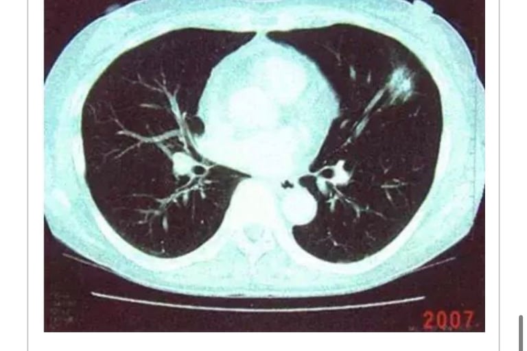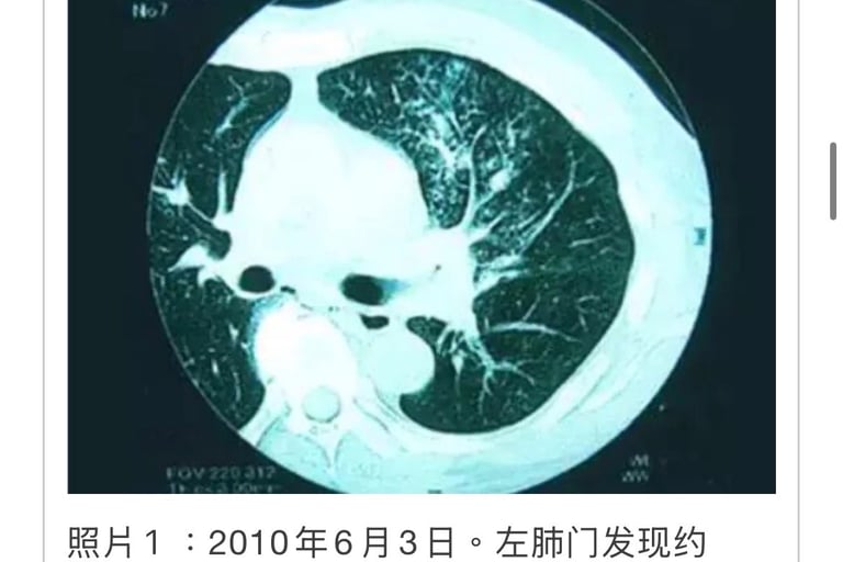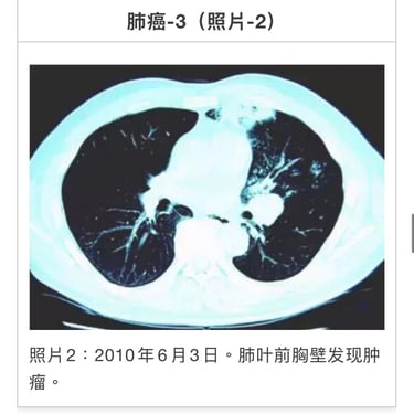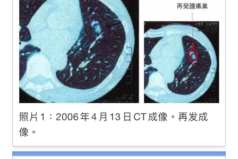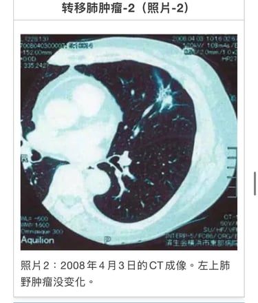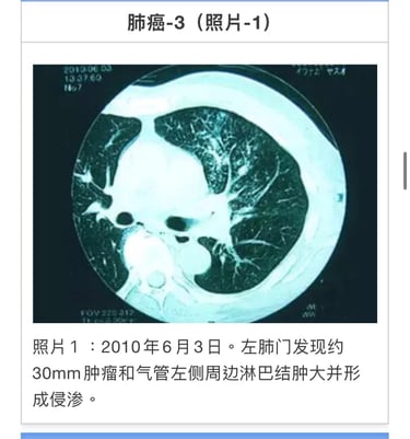 2005年4月6日、左肺癌(多发性器官癌=pT1pNOMOStage1A)左肺上叶切除。1年后再发。被称为「无良好治疗方法」(照片1)。