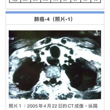 06年3月21日开始化疗,肿瘤标记物值一直不下降。CT成像显示心脏附近淋巴腺和颈椎有转移。患者来我院就诊前接受淋巴免疫治疗。结果显示效果不明显。