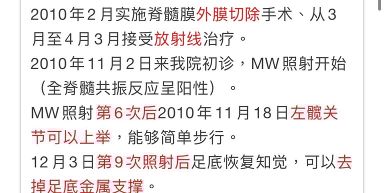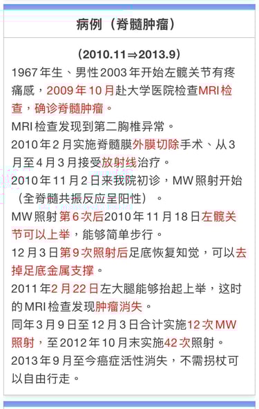 患者:「再也不想手术了。不管能治到什么程度都可以,能否用MW微波疗法继续治疗?」。