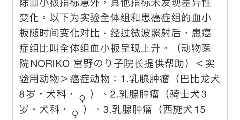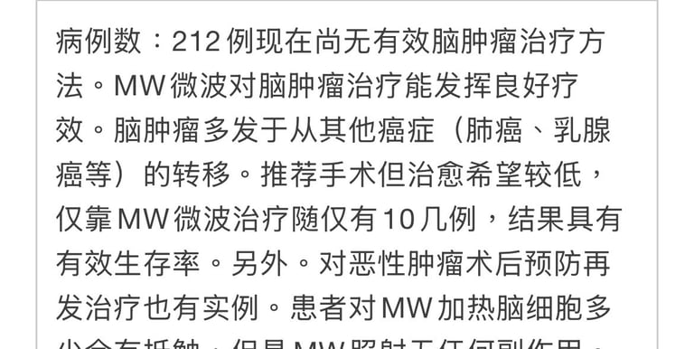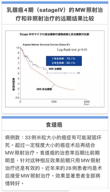 病例数:298例针对乳腺癌治疗,不开刀直接可以用MW照射治疗,如果患者癌症活性较强、治疗期会较长。