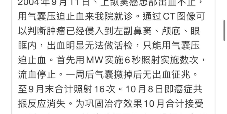 05年5月11日共振反应出现,从5月12日至6月10日MW全身照射合计6次。
