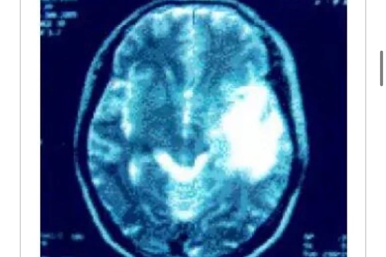 05年1月19日在脑外科被确诊左颞叶、顶叶、侧头均有转移(照片1)医生建议手术。