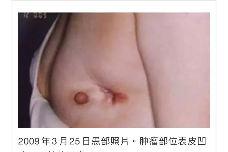2010年7月右侧乳腺癌。9月9日乳房、右侧腋窝淋巴腺全摘除手术。